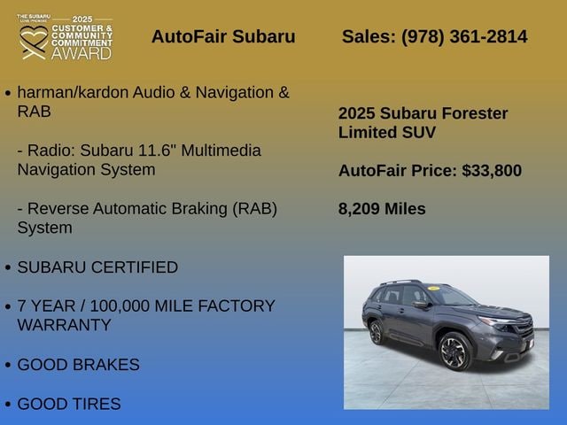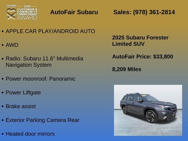 Don't miss the opportunity to make this 2025 Subaru Forester Limited your own. Schedule a test drive today and discover the perfect blend of capability, technology, and style that will elevate your driving experience.