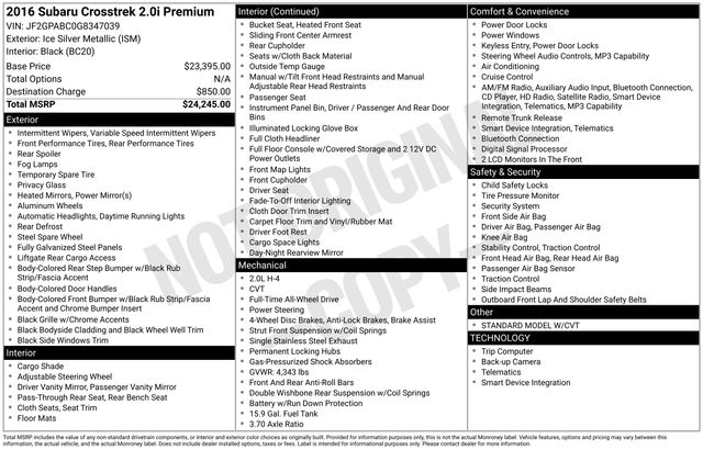 Whether you're navigating the daily commute, embarking on a weekend adventure, or simply seeking a versatile and reliable companion, the 2016 Subaru Crosstrek 2.0i Premium is the perfect choice. Experience the perfect balance of performance, technology, and safety that this exceptional crossover has to offer. Visit our showroom today and let us demonstrate how the Crosstrek can elevate your driving experience.