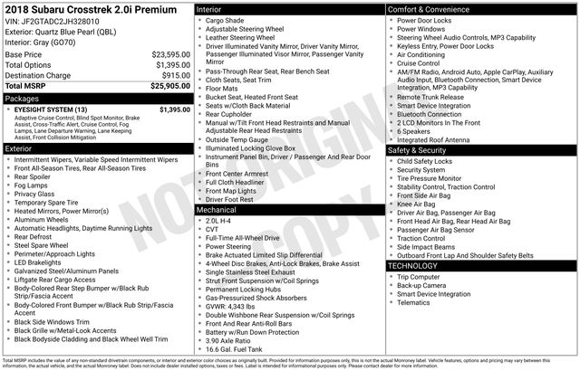 2018 Subaru Crosstrek 2.0i Premium Quartz Blue Pearl 2.0L 16V DOHC AWD Lineartronic CVT